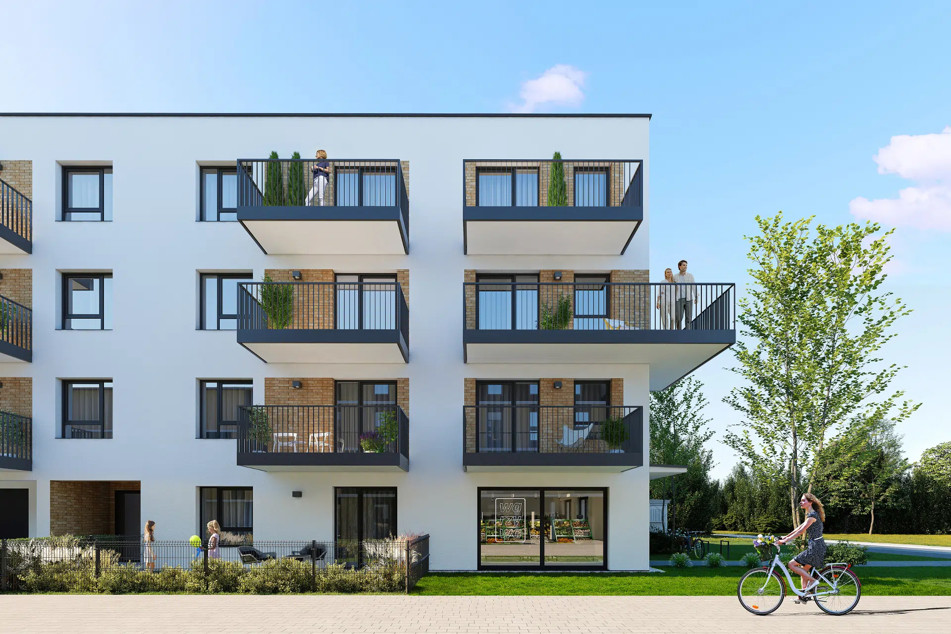 Just a few hundred meters away from the Ostródzka Street (ul. Ostródzka) you can find popular shopping centres and supermarkets. Smaller grocery stores are located in the immediate vicinity of the investment. There are also kindergartens, schools and health centres available in the area. There is a cinema and numerous stores and eateries in a well-known shopping centre nearby. The residents will therefore be able to easily arrange a family outing during the day or an evening out in a cinema or restaurant.