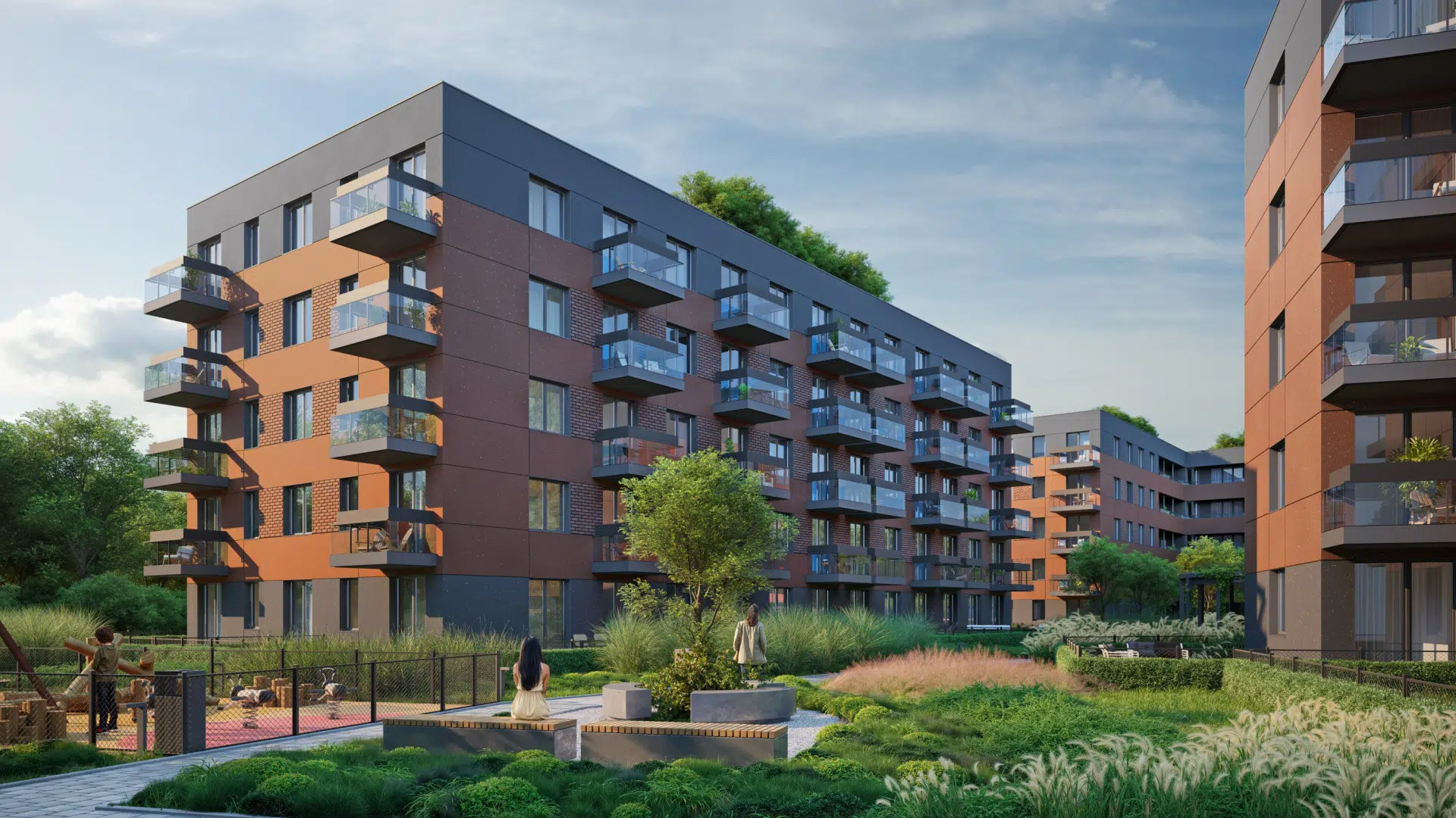 Otoczenie inwestycji zachęci mieszkańców do aktywnego spędzania wolnego czasu i przebywania na świeżym powietrzu. Projektanci zadbali o przestrzenie wspólne, na których pojawią się zielone nasadzenia oraz elementy małej architektury – ławeczki, leżaki. Dla najmłodszych stworzony zostanie plac zabaw.